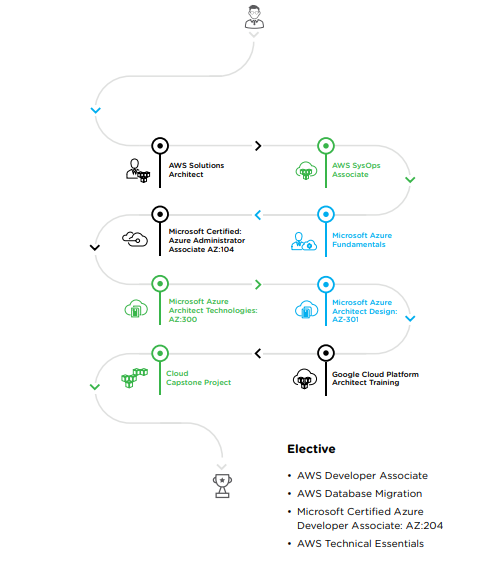 Cloud Architect Program will build your Amazon Web Services (AWS) and Microsoft Azure cloud expertise from the ground up. You’ll learn to master the architectural principles and services of two of the top cloud platforms, design and deploy highly scalable, fault-tolerant applications and develop skills to transform yourself into an AWS and Azure cloud architect.