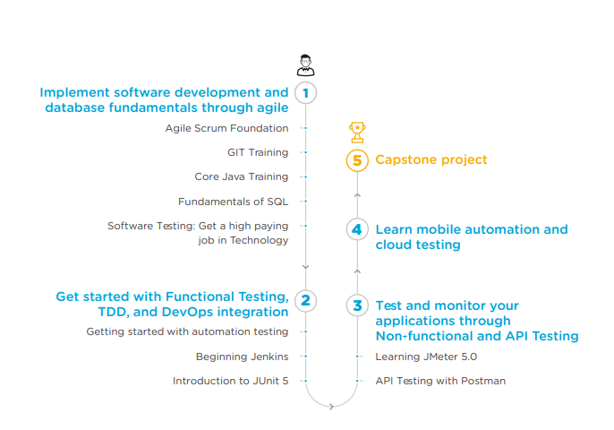 This course will advance your career as an automation test engineer. You’ll learn top skills demanded in the industry, including GIT, Selenium, Jenkins, and JMeter to apply engineering to software development processes and build quality products.